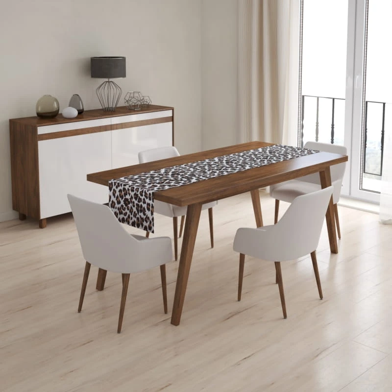Designerskie nakrycie stołu z kolekcji JUNGLE. Bieżnik dekoracyjny wykonany z najlepszej jakości bawełny hiszpańskiej, z małą domieszką poliestru, dla łatwiejszego użytkowania, o widocznym splocie, który gwarantuje najwyższą jakość, elegancję i oryginalne wzornictwo. Bieżnik w rozmiarze 40x135 cm wykonany został z bawełny hiszpańskiej, materiału o gramaturze 190g/m2. Produkt gotowy, stworzony dla marki BETTER HOME by Domarex.