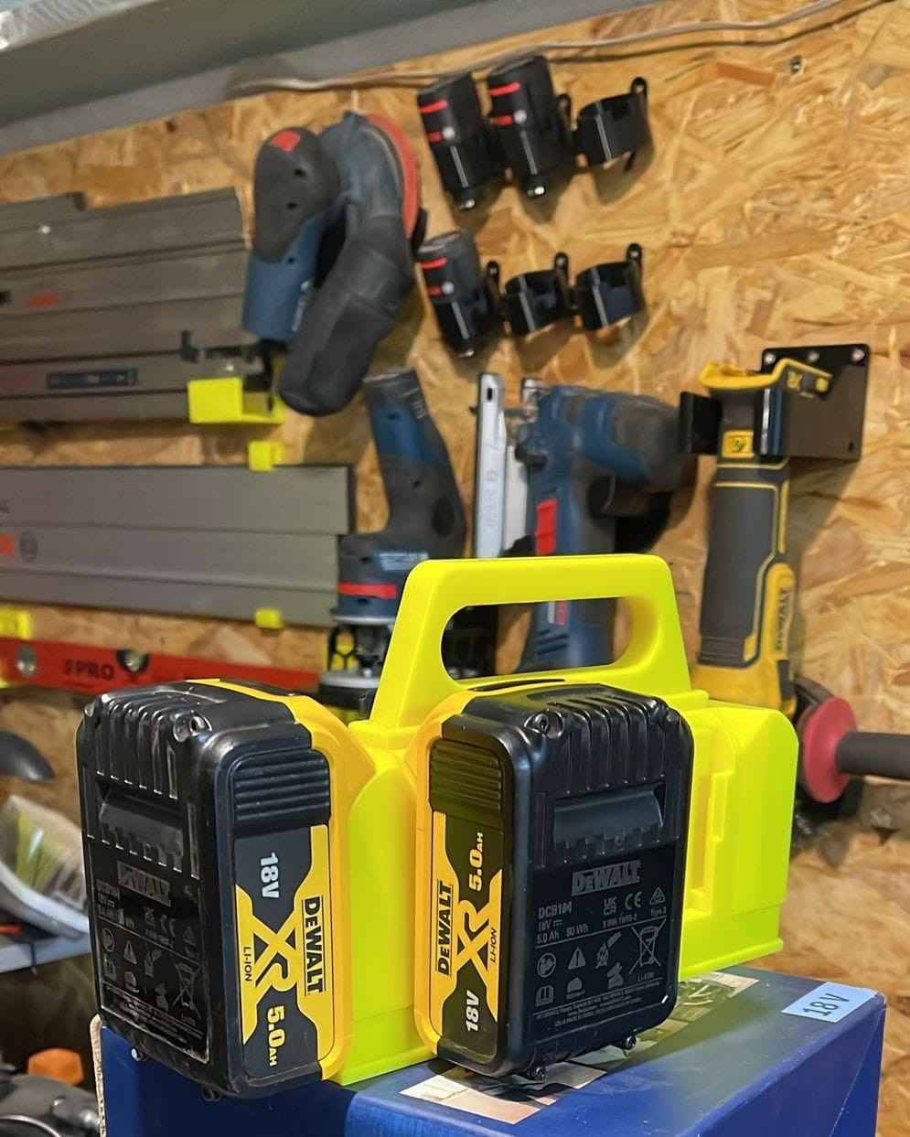 Koszyk pomoże Ci łatwo przenosić nawet do 6 akumulatorów, oraz bezpiecznie przechowywać je w jednym miejscu. Koszyk został zaprojektowany w kompaktowej i zwartej formie, dzięki czemu jest lekki, wytrzymały oraz stabilny. Łatwo można go umieścić w skrzynce narzędziowej, busie lub w miejscu pracy. Zintegrowana rączka jest sztywna, wygodna dla małych jak i dużych dłoni w rękawiczce lub bez.