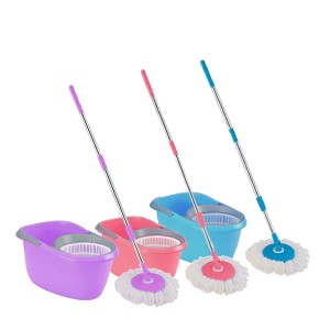 Wiadro posiada system wirujący, który wyciska nakładkę prawie do sucha.