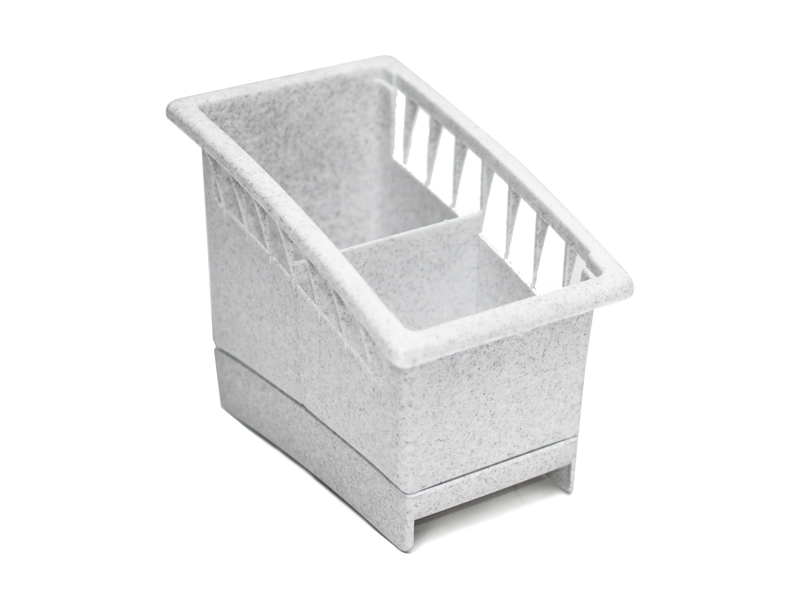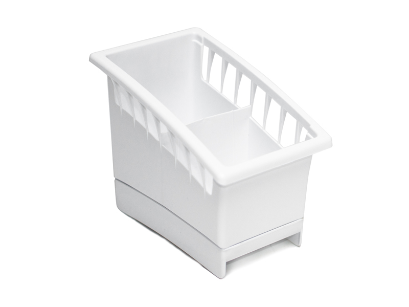 Ociekacz posiada tacę, na której zatrzymuje się woda ze sztućców.