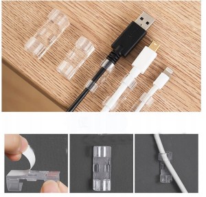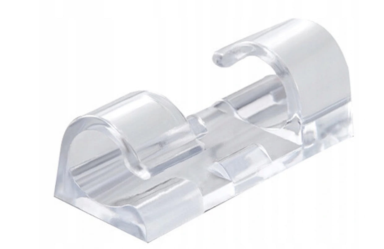 Samoprzylepny wieszak / klips służący jako organizer do kabli. Zapobiega splątaniu się kabli ułatwiając ich schludne uporządkowanie. Jest bardzo wytrzymały - mocno trzyma się powierzchni po przyklejeniu dzięki zastosowaniu taśmy dwustronnej 3M.
