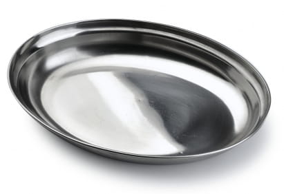 Półmisek wykonany ze stali nierdzewnej przeznaczony do serwowania wędlin, mięs, serów czy innych przekąsek.