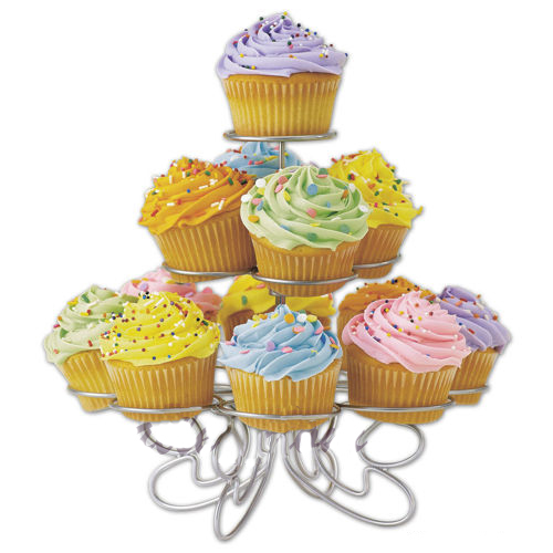 Stojak na muffinki wykonany jest ze stali szlachetnej w ciekawym wzorze.