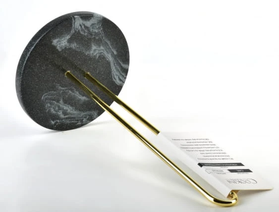 Podstawa wykonana z kamienia imitującego marmur oraz złoty stojak na ręcznik nada elegancji każdej kuchni.