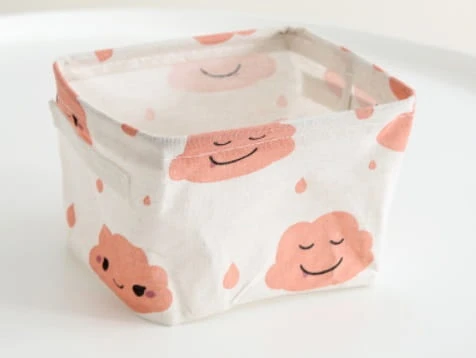 Koszyczek w kolorze jasnego beżu z nadrukowanymi różowymi chmurkami.