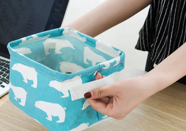 Materiałowy pojemnik idealnie sprawdzi się do przechowywania w nim bielizny, skarpetek, krawatów, pasków, biustonoszy.